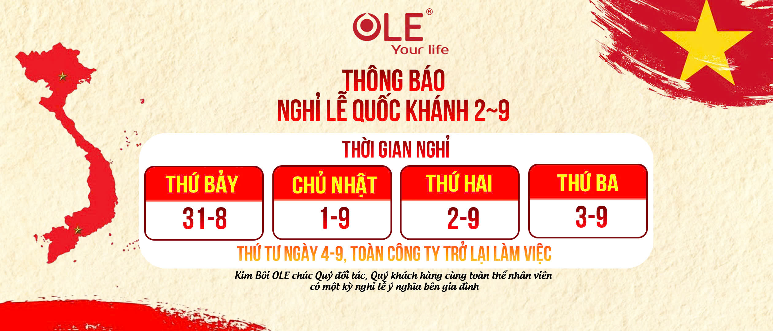 Trước tiên, Ole xin trân thành cảm ơn Quý khách đã tin tưởng và sử dụng sản phẩm, dịch vụ của chúng tôi trong suốt thời gian qua. Để thuận tiện trong kế hoạch làm viêc giữa công ty và Quý khách hàng, chúng tôi xin thông báo lịch nghỉ lễ Quốc Khánh mùng 2…